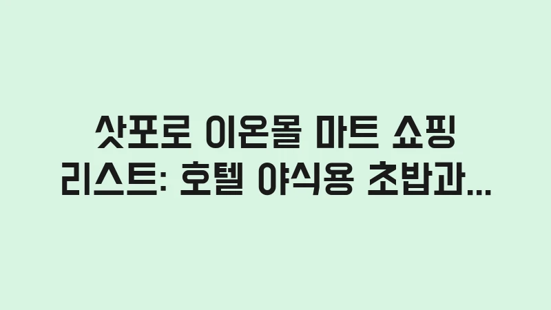 이 글은 삿포로 이온몰 마트의 쇼핑 리스트를 항목별로 추천하고, 가장 중요한 신선식품 코너의 할인 시간을 정확히 짚어주어 여러분의 쇼핑 성공률을 100%로 높이기 위해 작성되었습니다. 이온몰을 현명하게 공략하여 호텔에서 신선하고 푸짐한 야식을 즐길 준비가 되셨다면, 이 가이드에 집중해 주세요.