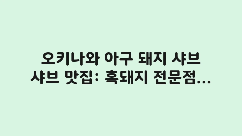 전문 여행 분석가인 저는, 수많은 흑돼지 전문점을 방문하고 그 특징을 데이터로 비교해 보았습니다. 이 글에서는 아구 돼지가 일반 돼지와 어떻게 다른지, 실패하지 않는 흑돼지 전문점 예약 방법은 무엇인지, 그리고 류큐 괸돌 구이 같은 특색 있는 메뉴는 무엇인지 상세히 알려드리겠습니다. 당신의 오키나와 샤브샤브 경험을 최고로 만들어 보세요.
