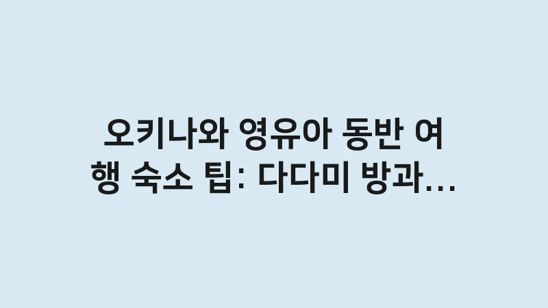 영유아 동반 오키나와 여행은 짐과의 전쟁입니다. 유모차, 카시트, 젖병 소독기, 아기 침대 가드 등 챙겨야 할 짐이 너무 많아 여행을 시작하기도 전에 지치기 쉽습니다. 또한, 낯선 호텔 객실에서 아이가 다치지 않을까 하는 걱정은 부모의 마음을 무겁게 합니다. 오키나와 영유아 동반 여행 숙소는 이러한 안전, 위생, 그리고 편의성 문제를 해결해 줄 수 있는 핵심 열쇠입니다.