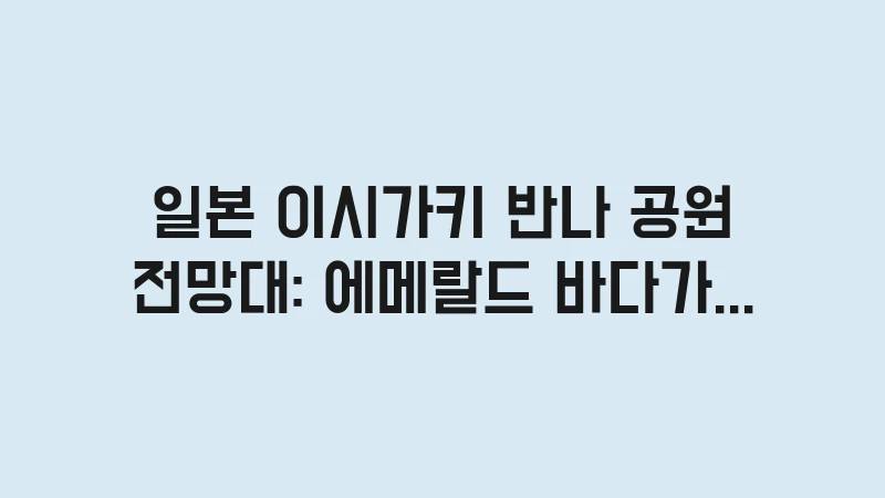 이시가키 여행의 전체적인 그림을 가장 완벽하게 머릿속에 그릴 수 있는 곳이 어디냐고 묻는다면, 저는 한치의 망설임 없이 반나 공원 전망대를 꼽습니다. 해발 230m의 반나 산에 조성된 이 공원은 이시가키의 ‘허파’와도 같은 역할을 하는 방대한 자연 공원입니다. 그중에서도 산 정상부에 위치한 ‘에메랄드의 바다가 보이는 전망대’에 올라섰을 때 마주한 그 투명한 수평선과 이시가키 시내의 평화로운 전경은 이번 여행 중 제가 가장 깊은 숨을 들이켰던 순간이었습니다.