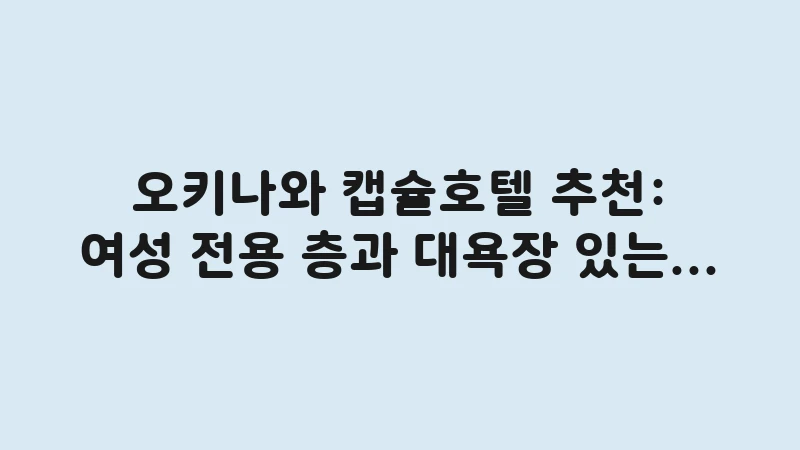 오키나와 캡슐호텔은 혼자 여행하는 여성에게 최저가 숙박과 최고 수준의 안전, 그리고 대욕장이라는 힐링 시설을 제공하는 최고의 선택입니다. 이 글에서 제시된 체크리스트와 팁을 활용하여, 당신의 여행 예산을 지키면서도 완벽하게 안전하고 편안한 오키나와 여행을 즐기세요.