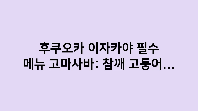 후쿠오카 이자카야 필수 메뉴 고마사바(참깨 고등어회)의 매력과 현지인 추천 맛집 고르는 법, 비린내 없이 고소하게 즐기는 법을 2025년 최신 정보로 정리해 드립니다. , 이어서