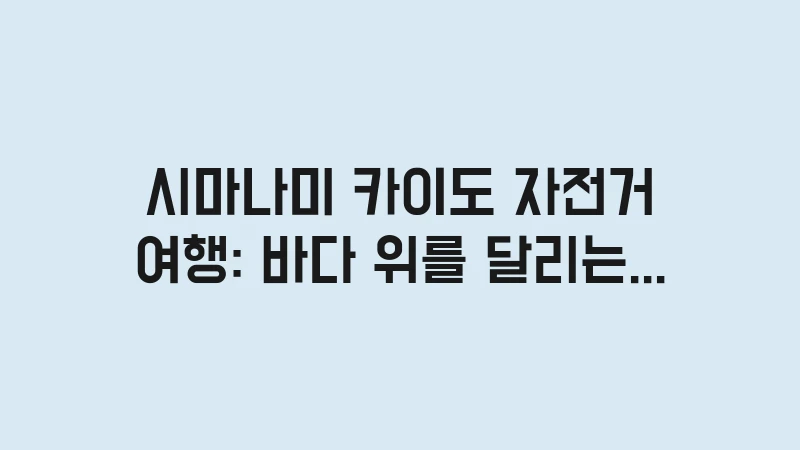시마나미 카이도 자전거 여행을 위한 완벽 가이드입니다. 오노미치에서 이마바리까지 바다 위를 달리는 환상적인 코스, 자전거 대여 방법, 소요 시간 및 초보자를 위한 구간 팁을 2025년 최신 정보로 정리했습니다. 지금 바로 바다 위 라이딩을 준비하세요. , 이어서