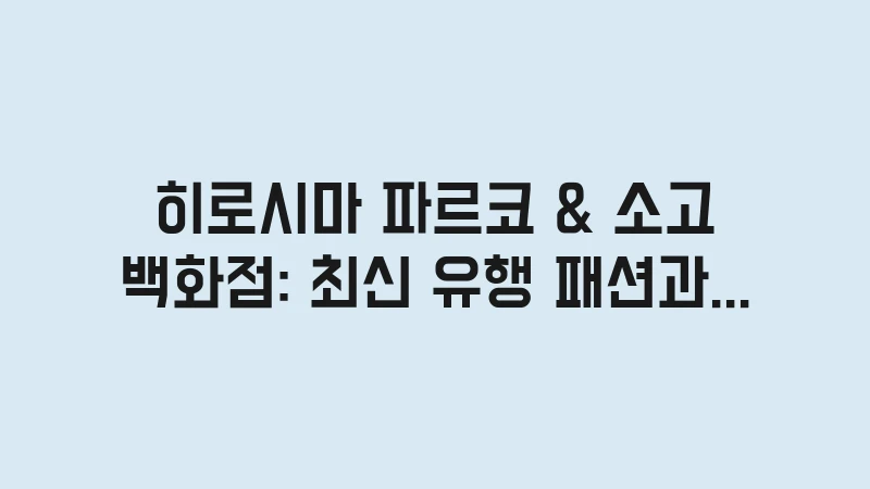 히로시마 파르코 & 소고 백화점 쇼핑 정보를 찾으시나요? 최신 유행 패션의 중심 PARCO와 전통의 미식 성지 SOGO 백화점의 층별 안내와 지하 식품관 투어 팁을 2025년 최신판으로 정리했습니다. 히로시마 품격 있는 쇼핑 투어를 지금 시작하세요! , 이어서