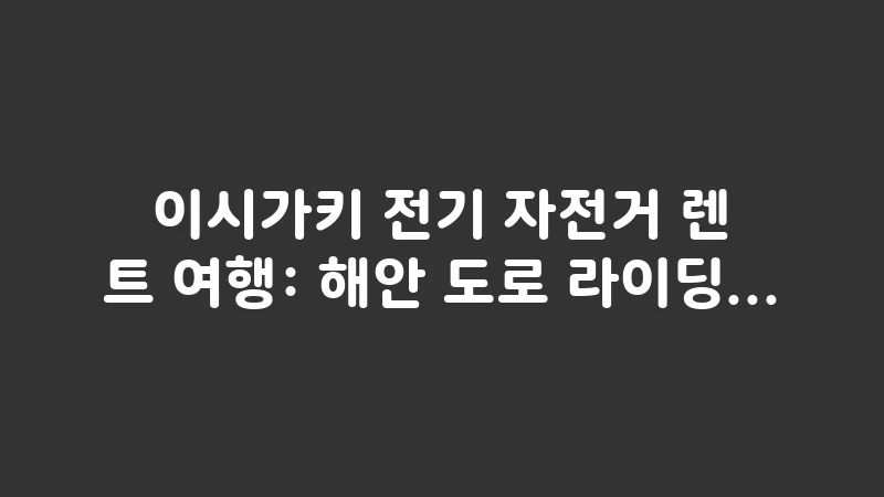 이시가키의 바람을 가르며 달리는 전기 자전거 여행! 렌트 비용부터 추천 해안 도로 라이딩 코스, 그리고 배터리 걱정 없는 이용 꿀팁까지. 렌트카와는 또 다른 매력을 느끼고 싶은 여행자를 위한 완벽 가이드입니다. , 이어서