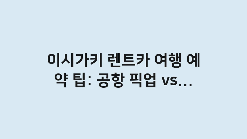 이시가키 렌트카 예약 전 필독! 공항 픽업과 페리 터미널 수령의 장단점을 비교하고, 일본 운전 주의사항과 주차 팁까지 완벽하게 정리했습니다. 예약 시기와 추천 업체를 확인하여 편안한 이시가키 여행을 준비하세요. , 이어서