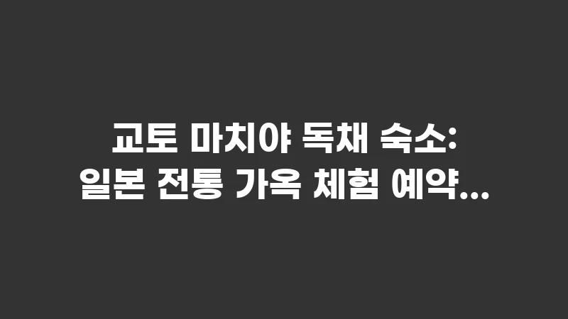 교토 마치야 독채 숙소 예약 방법과 가격 정보를 총정리해 드립니다. 일본 전통 가옥에서 현지인처럼 살아보는 특별한 경험을 원하시나요? 기온, 니시키 시장 인근의 고풍스러운 마치야 숙소 선택 기준과 에어비앤비 예약 시 주의사항을 확인하여 완벽한 교토 스테이를 계획해 보세요. , 이어서