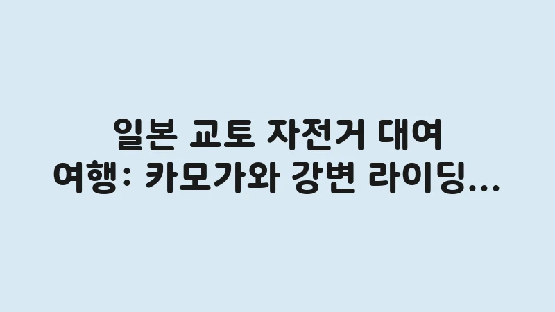 교토 자전거 대여 여행을 위한 카모가와 강변 라이딩 코스와 대여소 이용 방법을 완벽 정리했습니다. 전동 자전거 대여 팁과 주차 주의사항을 150자 내외로 상세히 확인하세요. , 이어서