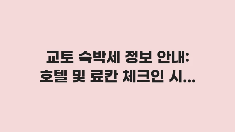일본 교토 숙박세 금액과 지불 방법에 대해 알고 계신가요? 호텔이나 료칸 체크인 시 지불해야 하는 세금 기준과 예외 사항, 주의점을 완벽 정리했습니다. 현장에서 당황하지 않도록 미리 확인하세요. , 이어서
