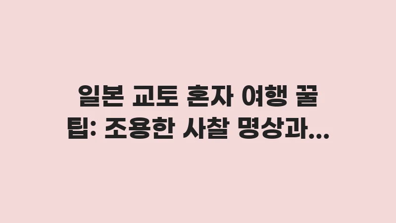 일본 교토 혼자 여행을 계획하시나요? 조용한 사찰에서의 명상 스팟, 혼밥하기 좋은 1인 식당, 감성 가득한 카페 투어까지 나홀로 여행자를 위한 완벽한 꿀팁과 코스를 확인하세요. , 이어서