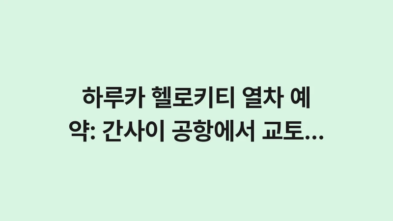 간사이 공항에서 교토까지 가장 빠르게 이동하는 하루카 열차 예약 가이드입니다. 헬로키티 열차 탑승 팁, 지정석 예약 방법, 지정석 발권 노하우 등 실전 팁을 확인하고 편안하게 여행을 시작하세요. , 이어서