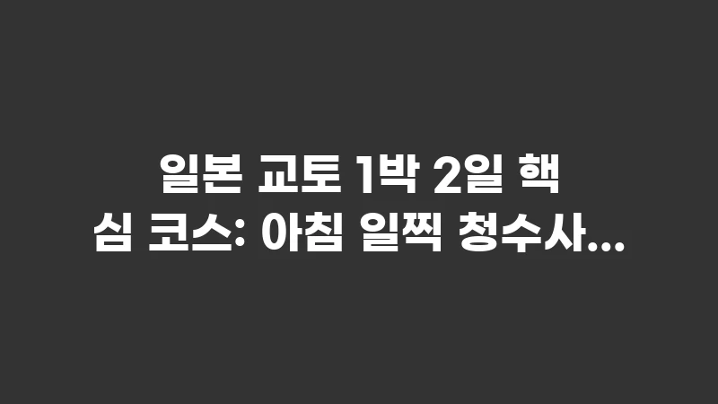 일본 교토 1박 2일 여행을 위한 핵심 코스를 소개합니다. 아침 일찍 즐기는 청수사 산책부터 저녁 기온 거리 투어까지, 짧지만 알찬 교토 여행을 위한 최적의 동선과 시간대별 팁을 확인하세요. , 이어서