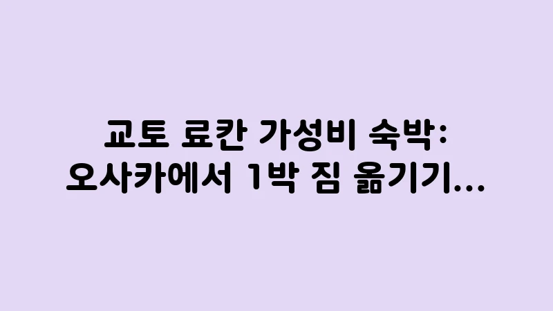 교토 료칸 가성비 숙박 노하우와 오사카에서 1박 짐 옮기기 서비스 활용법을 상세히 안내합니다. 높은 료칸 가격이 부담스러운 여행객을 위해 합리적인 가격의 숙소 선택 기준과 무거운 짐 걱정 없이 교토의 정취를 만끽할 수 있는 실전 팁을 2025년 최신 정보로 정리했습니다. , 이어서