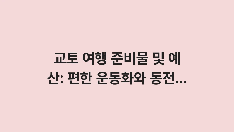 교토 여행 준비물 및 예산 정보를 찾고 계신가요? 편한 운동화, 동전 지갑 등 필수 아이템 리스트와 식비, 숙박비 등 상세 예산 가이드를 통해 완벽한 일본 교토 여행을 준비하세요. , 이어서