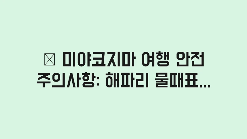 미야코지마 여행 안전 주의사항 정보를 찾고 계신가요? 해파리 대처법부터 물때표 보는 법, 현지 응급실 정보까지 즐거운 휴양을 방해하는 사고를 예방하기 위한 모든 필수 안전 수칙을 총정리해 드립니다. , 이어서
