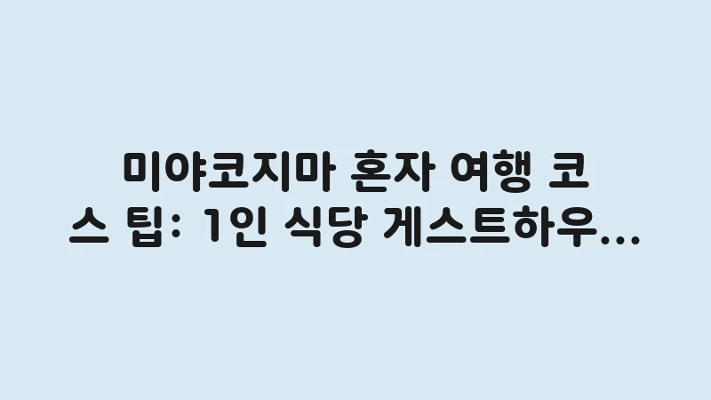 미야코지마 혼자 여행을 계획하고 계신가요? 1인 식당부터 스쿠터 대여 팁, 혼자서도 안전하게 즐기는 스노클링 명소와 가성비 게스트하우스까지 나홀로 여행자를 위한 실용 정보를 총정리했습니다. , 이어서