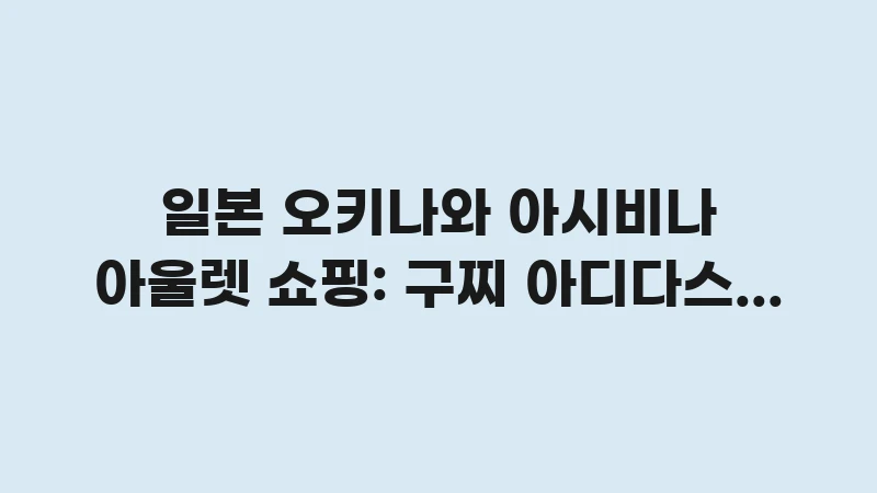 일본 오키나와 아시비나 아울렛 쇼핑 가이드: 구찌, 아디다스, 나이키 등 인기 브랜드의 실제 할인율과 추가 할인 쿠폰, 면세 혜택 활용 팁을 상세히 분석하여 현명한 쇼핑을 돕습니다. , 이어서