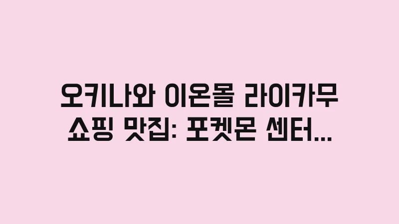 오키나와 이온몰 라이카무 쇼핑 완벽 가이드! 포켓몬 센터, 대형 수족관 위치와 꼭 먹어야 할 맛집, 효율적인 면세 방법 등 가족 여행객을 위한 층별 공략법을 상세히 알려드립니다. , 이어서