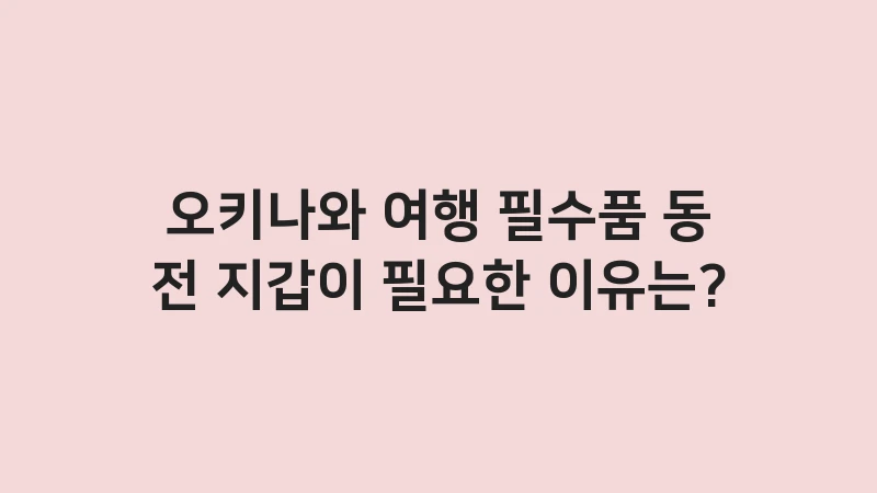 오키나와 여행 필수품 동전 지갑이 필요한 이유와 현명한 사용 팁을 알려드립니다. 1엔부터 500엔까지 쌓이는 동전의 압박에서 벗어나고, 편의점이나판기에서 현금 결제를 완벽하게 대비하는 방법을 확인하세요. , 이어서