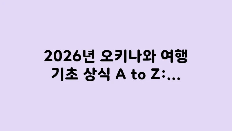오키나와 여행 기초 상식 A to Z: 2026년 최신 정보를 바탕으로 준비부터 실전까지 완벽하게 총정리했습니다. 비행시간, 환전, 교통, 숙소, 에티켓까지 한 번에 끝내세요. , 이어서