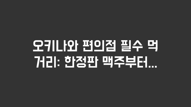 오키나와 편의점 필수 먹거리 총정리: 오리온 맥주 한정판, 시쿠와사 하이볼, 쟈지 푸딩 등 놓치면 후회할 편의점 음식과 음료 베스트 7을 소개합니다. 오키나와 로컬 특화 메뉴 공략 팁까지 상세히 담았습니다. , 이어서