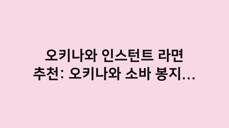 오키나와 인스턴트 라면 추천 목록입니다. 오키나와 소바 봉지 라면과 컵라면의 맛을 비교하고, 현지 편의점에서 구매할 수 있는 꿀팁을 알려드립니다. , 이어서