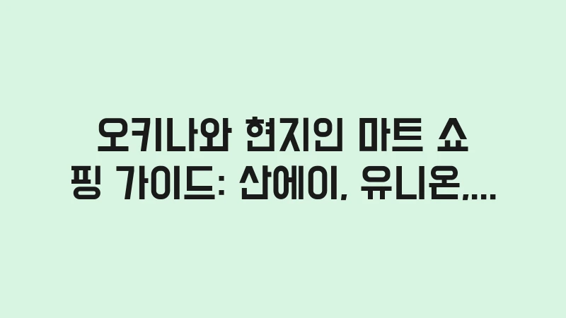 오키나와 현지인 마트 쇼핑 가이드: 산에이, 유니온, 맥스밸류 3대 마트별 특징, 마감 세일 시간대, 필수 구매템 비교 분석, 마트별 주력 상품 추천까지 실패 없는 쇼핑 전략을 A to Z로 알려드립니다. , 이어서