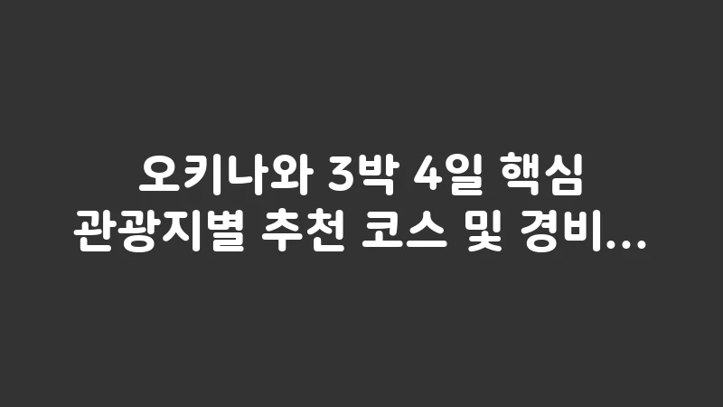 오키나와 3박 4일 경비 및 핵심 관광지별 추천 코스, 비용 배분 전략을 상세히 제시합니다. 렌트카를 활용하여 중부와 북부를 효율적으로 공략하는 가장 이상적인 여행 계획을 확인하세요. , 이어서