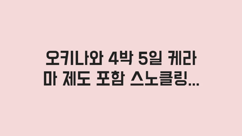오키나와 4박 5일 케라마 제도 스노클링 포함 풀빌라 예산을 상세히 추정했습니다. 여유로운 휴양과 해양 액티비티를 동시에 즐기는 4박 5일 풀코스의 비용 통제 전략을 확인하세요. , 이어서