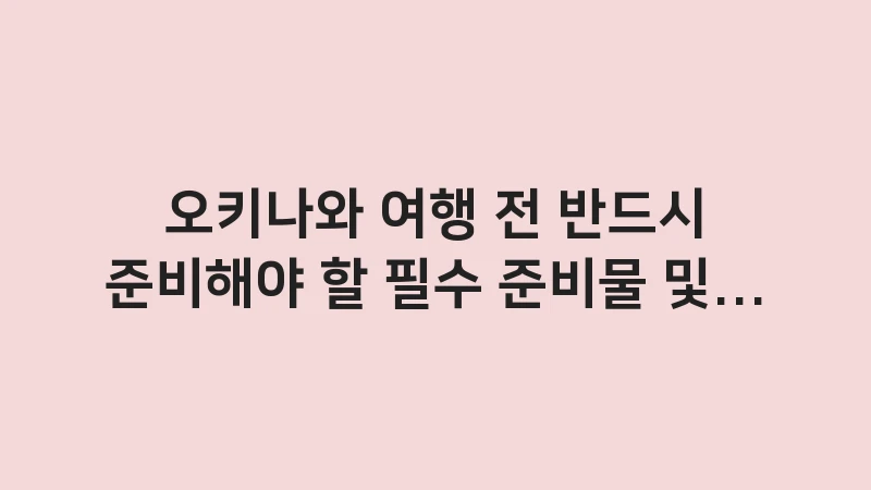 오키나와 여행 전 반드시 준비해야 할 필수 준비물 체크리스트를 완벽 정리했습니다. 환전, 유심/이심 선택부터 돼지코, 아쿠아슈즈, 비짓재팬웹 활용 방법까지 모든 것을 한 번에 확인하세요. , 이어서