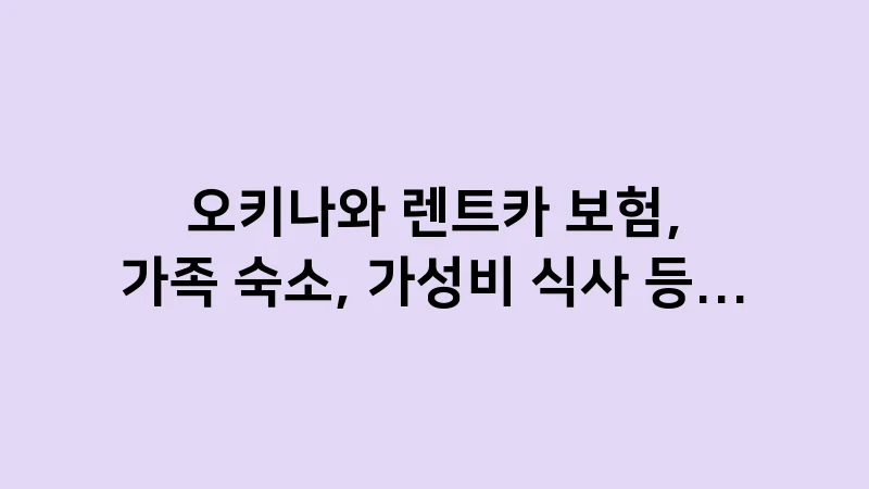 오키나와 렌트카 보험, 4인 가족 숙소, 가성비 식사 등 실전 여행 팁을 상세하게 정리했습니다. NOC/풀커버 보험 필수 여부부터 스테이크 도시락, 마트 이용 팁까지 후회 없는 오키나와 여행을 위한 모든 노하우를 확인하세요. , 이어서