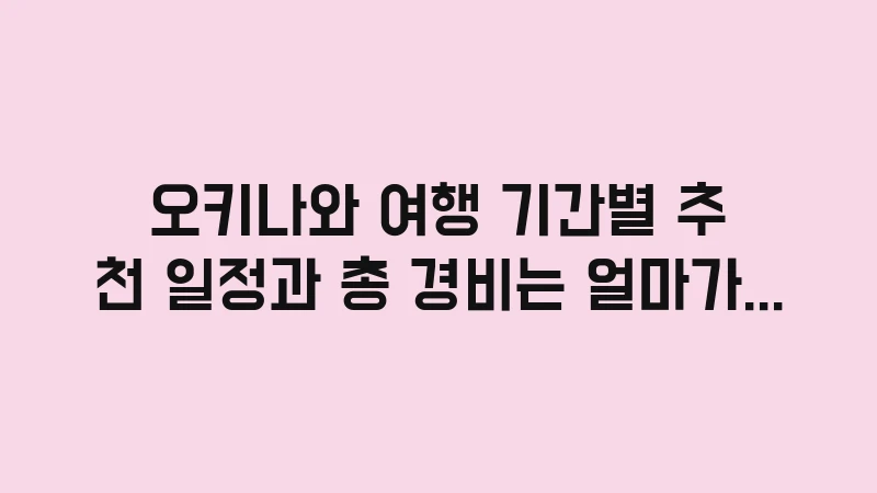 오키나와 여행 기간별 경비 및 추천 일정을 2박 3일부터 4박 5일까지 완벽 비교했습니다. 개인의 예산과 여행 스타일에 맞는 최적의 기간과 비용 배분 전략을 확인하고 후회 없는 계획을 세우세요. , 이어서