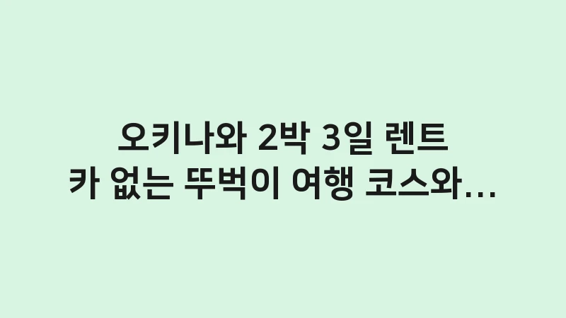 오키나와 2박 3일 렌트카 없는 뚜벅이 여행 코스와 예산을 상세히 분석했습니다. 나하 시내와 국제거리, 슈리성 등 핵심 명소만을 공략하는 최적의 가성비 여행 전략을 확인하세요. , 이어서