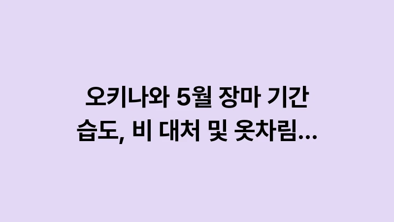 오키나와 5월 장마 기간 습도, 비 대처 및 옷차림 팁을 상세히 정리합니다. 장마철 불쾌지수를 낮추는 숙소 제습기 활용법, 우비, 샌들 등 필수템 정보와 비 오는 날 즐길 수 있는 실내 관광지까지, 완벽한 장마철 여행을 위한 모든 노하우를 제공합니다. 실패 없는 5월 여행을 지금 계획하세요. , 이어서