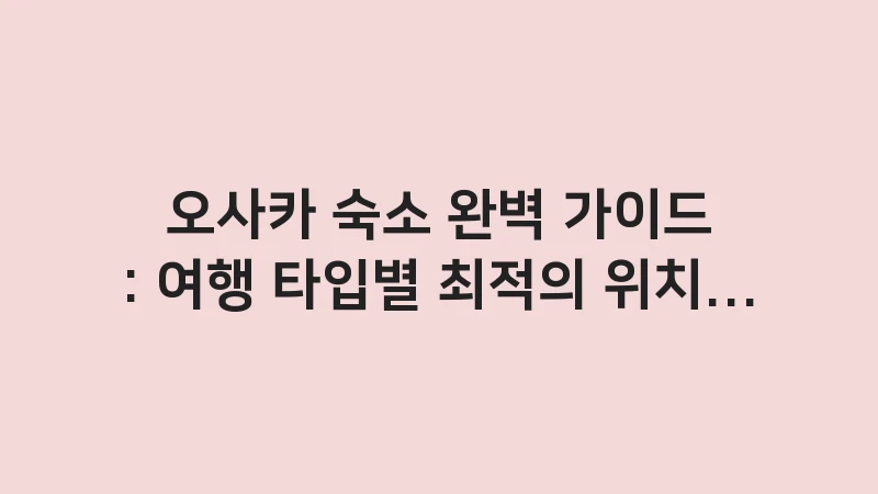 오사카 숙소 완벽 가이드 정보를 통해 여행 타입별 최적의 위치와 호텔 추천 리스트를 확인하세요. 난바, 우메다, 유니버설 스튜디오 인근 숙소의 장단점과 예약 비법을 2025년 최신 기준으로 꼼꼼하게 정리하여 여러분의 여행 고민을 완벽하게 해결해 드립니다. , 이어서