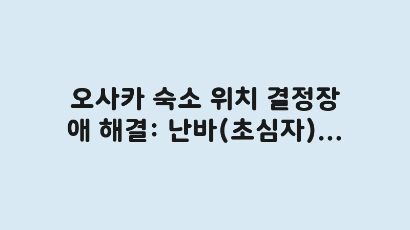 오사카 숙소 위치 결정장애 해결을 위해 난바와 우메다 지역의 특징을 상세히 비교했습니다. 초심자에게 최적인 난바와 교통의 중심 우메다 중 본인의 여행 스타일에 맞는 완벽한 위치를 선택하는 기준을 제시하여 후회 없는 숙소 예약을 도와드립니다. , 이어서