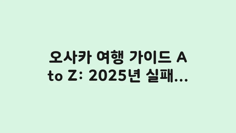 오사카 여행 가이드 A to Z: 2025년 실패 없는 3박 4일 실전 노하우 총정리