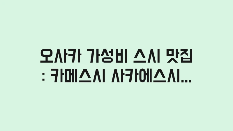 오사카 가성비 스시 맛집, 현지인이 인정하는 카메스시와 사카에스시의 웨이팅 줄이는 법과 추천 메뉴를 2026년 최신판으로 공개합니다. 한 점 100엔대부터 즐기는 고퀄리티 스시의 정수를 지금 바로 확인하세요. , 이어서