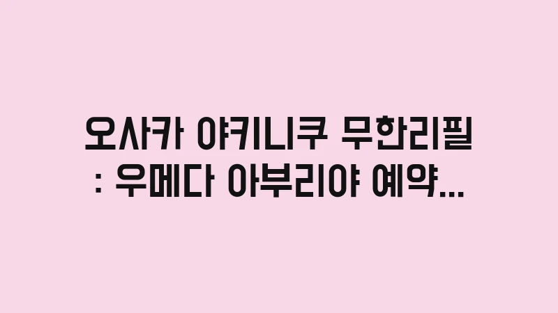 오사카 야키니쿠 무한리필, 우메다 아부리야 예약 필수 팁과 가성비 최고의 메뉴 선택법을 2026년 최신판으로 정리했습니다. 질 좋은 소고기를 마음껏 즐기는 현지인 맛집 이용 노하우를 지금 확인하세요. , 이어서