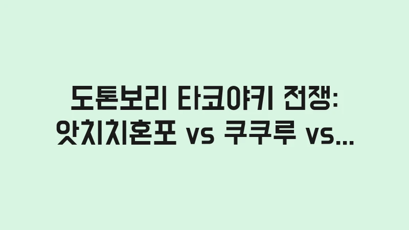 도톤보리 타코야키 전쟁, 앗치치혼포부터 쿠쿠루, 와나카까지 도톤보리 대표 타코야키 3대장을 전격 비교했습니다. 겉바속촉의 정석을 찾는다면 이 글을 통해 자신의 입맛에 딱 맞는 인생 타코야키를 찾아보세요. , 이어서