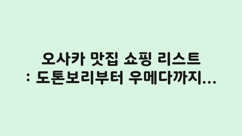 오사카 맛집 쇼핑 리스트, 도톤보리부터 우메다까지 현지인만 아는 숨은 명소와 쇼핑 꿀팁을 2026년 최신판으로 정리했습니다. 실패 없는 미식 여행을 위한 완벽한 가이드를 지금 바로 확인하고 오사카 여행의 정수를 만끽해보세요. , 이어서