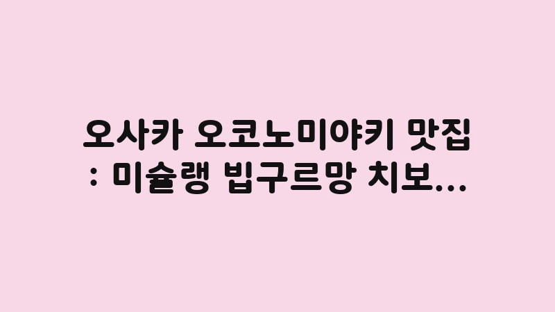 오사카 오코노미야키 맛집, 미슐랭 빕구르망에 빛나는 치보, 키지, 미즈노의 웨이팅 팁과 대표 메뉴를 정리했습니다. 1시간 이상의 대기를 피하는 실전 노하우와 현지인만 아는 주문 비법을 통해 인생 오코노미야키를 경험해보세요. , 이어서