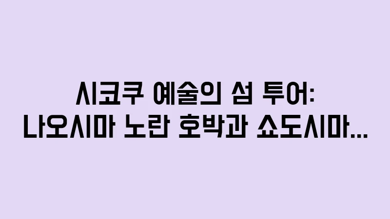 시코쿠 예술의 섬 나오시마와 쇼도시마 투어 가이드입니다. 쿠사마 야요이의 노란 호박, 지중 미술관 예약 팁부터 쇼도시마 올리브 공원 인생샷 촬영 명당까지 예술과 자연이 어우러진 완벽한 섬 여행을 준비하세요. , 이어서