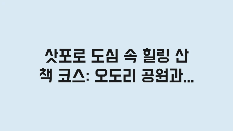 삿포로 도심 속 힐링을 위한 최고의 산책 코스 가이드! 오도리 공원의 계절별 축제와 나카지마 공원의 고요한 호수, 홋카이도 대학 캠퍼스까지, 10년 차 여행 전문가가 일상에 지친 당신을 위한 완벽한 힐링 동선을 추천해 드립니다.연과 도시의 조화를 만끽하세요. , 이어서