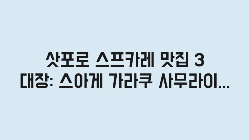 삿포로 스프카레 맛집 3대장 스아게, 가라쿠, 사무라이 웨이팅 및 예약 꿀팁을 공개합니다. 웨이팅 지옥에서 벗어나 시간을 절약하고, 실패 없는 주문 전략으로 최고의 스프카레를 즐기세요. , 이어서