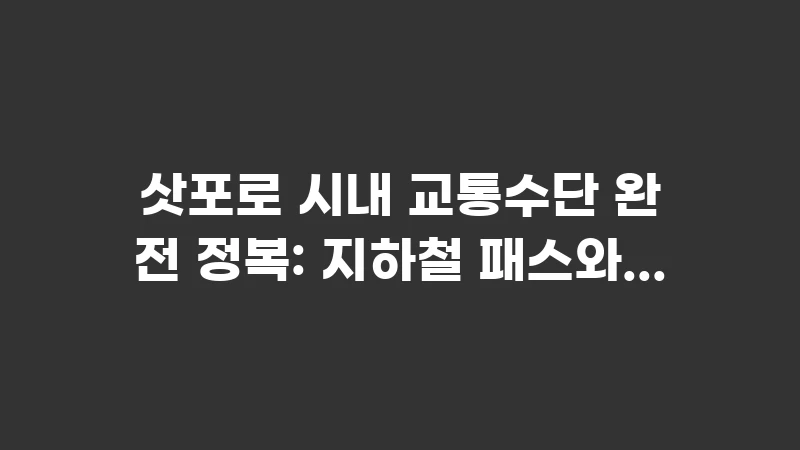 삿포로 시내 교통수단 완전 정복을 위한 지하철 패스, 교통카드 활용 팁을 상세 안내합니다. 도니치카, 키타카, 사피카 비교 분석으로 가장 효율적인 이동 전략을 세우세요. , 이어서