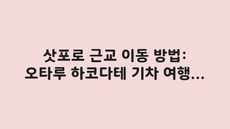 삿포로 근교 이동 방법 완벽 가이드: 오타루, 하코다테 기차 여행 및 렌터카 이동의 장단점을 분석합니다. 홋카이도 여행의 효율을 높이는 교통 전략을 세우세요. , 이어서