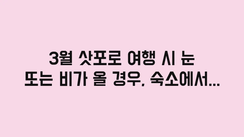 3월 삿포로 여행 시 눈 또는 비가 올 경우, 숙소에서 신발과 옷을 관리하는 실용적인 방법과 빠른 건조 팁을 전문가의 경험을 바탕으로 상세하게 안내합니다. , 이어서