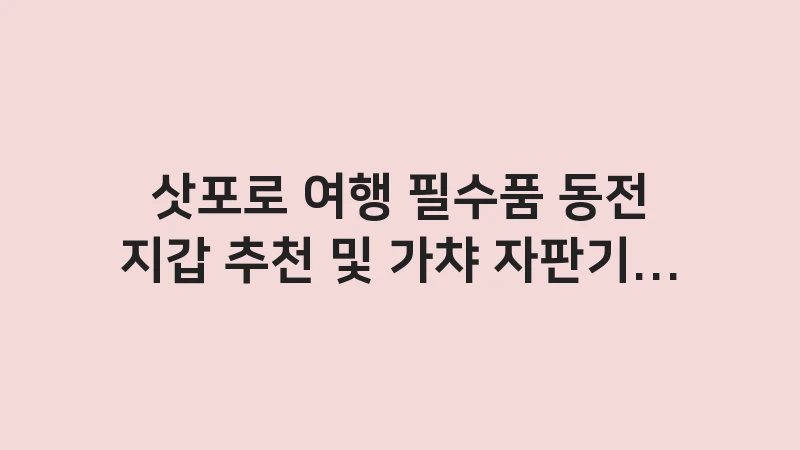 삿포로 여행 필수품인 동전 지갑 추천과 활용법을 소개합니다. 동전 지갑을 반드시 챙겨야 하는 이유, 스마트한 동전 관리 노하우, 쌓인 동전을 재미있게 처리하는 가챠판기 활용 팁까지 여행의 편의를 높여줄 모든 정보를 알려드립니다. , 이어서