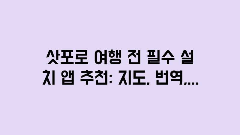 삿포로 여행 전 필수 설치 앱을 총정리합니다. 길 찾기 지도 앱, 실시간 번역 어플, 정확한 날씨 예보 앱까지 스마트폰 하나로 여행의 편의를 100% 높이는 앱 활용 노하우를 제공합니다. 시간 절약을 위한 최종 체크리스트입니다. , 이어서